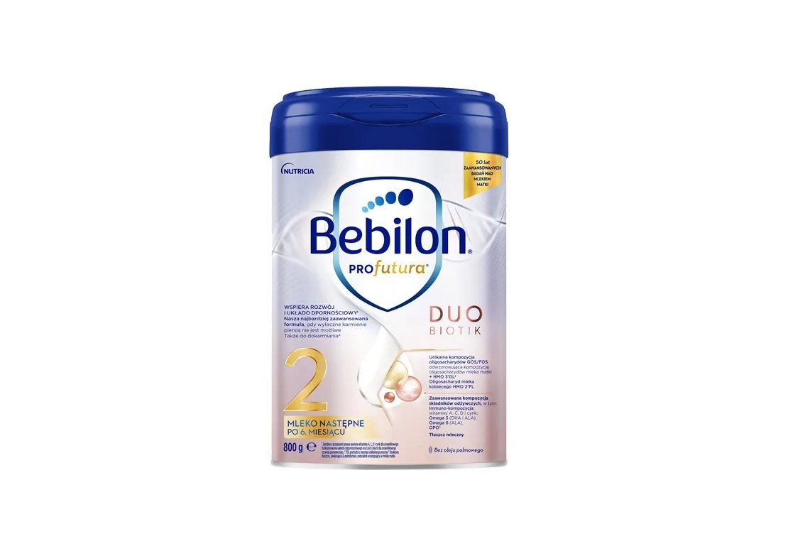 BEBILON PROFUTURA DUO BIOTIK 2 to mleko następne specjalnie z myślą o dzieciach powyżej 6 miesiąca życia, które nie są karmione piersią lub wymagających dokarmiania. To kompletna odżywcza kompozycja składników odpowiadająca na potrzeby dzieci od urodzenia. Preparat posiada unikalną i zaawansowaną formułę DUOBIOTIK. Dodatkowo zawiera kompleks niezbędnych witamin i minerałów w odpowiednio dobranych ilościach: witaminy A, C, D, B2, żelazo, jod oraz cynk, które wspierają prawidłowy wzrost, rozwój funkcji poznawczych, właściwy metabolizm energetyczny oraz wspierają układ odpornościowy.