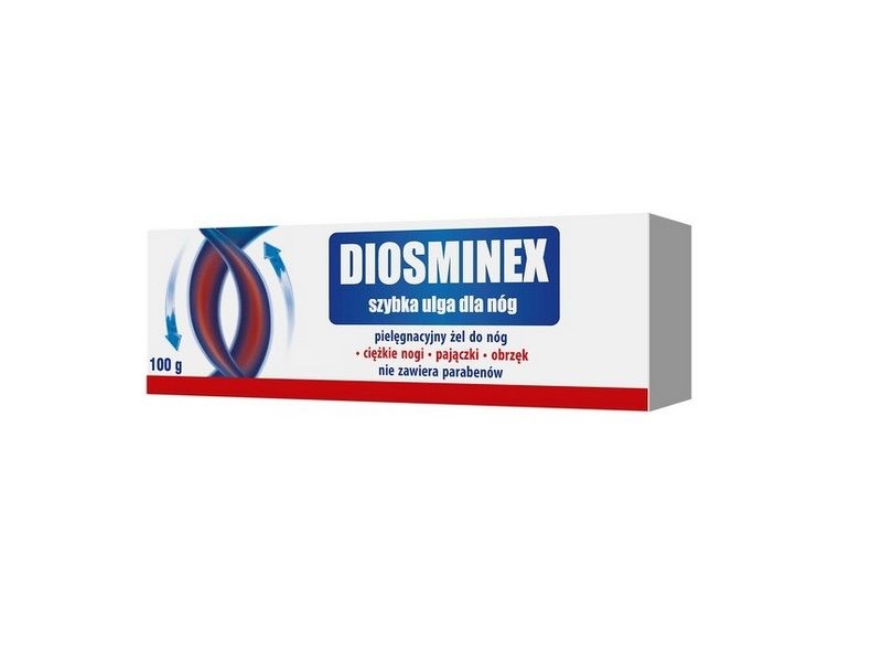 DIOSMINEX Szybka ulga dla nóg żel. Kosmetyk w żelu – zawiera diosminę oraz mentol dający efekt chłodzenia. Stworzony z myślą o osobach walczących z problemem ciężkich nóg i pajączkami naczyniowymi.