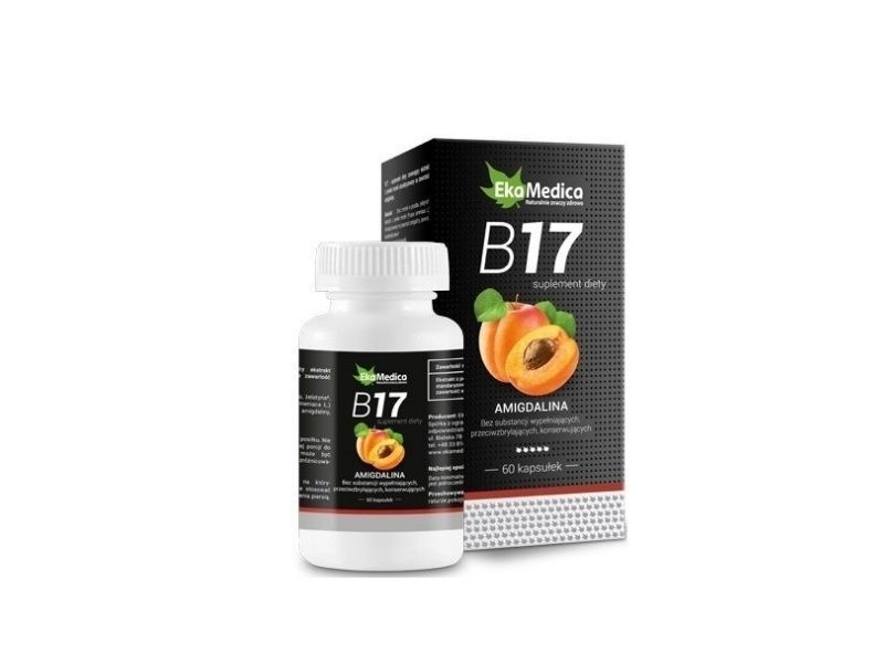 EKAMEDICA B17 Amigdalina to suplement diety w postaci kapsułek zawierający ekstrakt z pestek moreli, standaryzowany na zawartość amigdaliny, nazywanej również witaminą B17. Amigdalina (witamina B17) jest organicznym związkiem chemicznym z grupy glikozydów, który występuje w wielu roślinach. W najwyższym stężeniu można ją znaleźć w pestkach migdałowca (łac. Amygdalus communis), a także pigwy, moreli, brzoskwini, śliwki i wiśni. Witamina B17 jest cząsteczką, która posiada jednostkę cyjanku, benzaldehydu i glukozy razem. Substancje te kiedy są „zamknięte” w cząsteczce amigdaliny nie wykazują szkodliwego działania na organizm. Ulegają one jedynie aktywacji za pomocą enzymu beta-glukozydazy, który obecny jest w komórkach nowotworowych. Zatem witamina B17 działa niszcząco wyłącznie na tkanki nowotworowe. Wnika ona tylko do komórek rakowych, a następnie wyniszcza je dzięki silnie trującym substancjom. Spożywanie pestek owoców zawierających tę witaminę ma potwierdzone badaniami działanie przeciwnowotworowe u pacjentów ze zdiagnozowanym nowotworem.