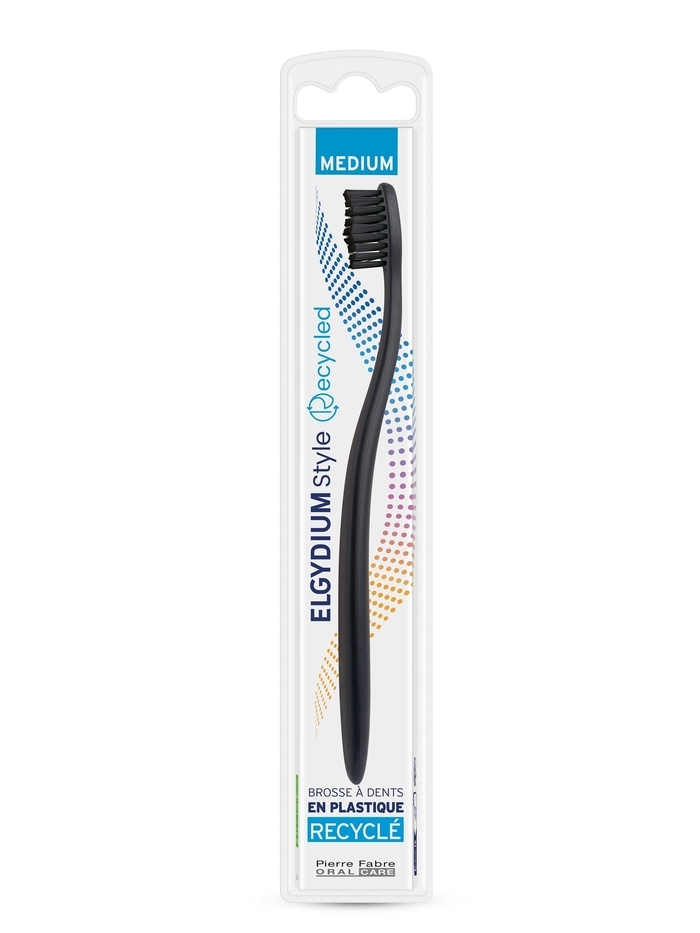 ELGYDIUM STYLE Szczoteczka do zębów z recyklingu, posiada rączkę z plastiku pochodzącego z recyklingu, zapewniającą wysoki komfort szczotkowania. Włosie szczoteczki pochodzi z oleju rycynowego. Dzięki falistemu kształtowi włosia płytka nazębna jest jeszcze bardziej skuteczniej usuwana. Szczoteczka Elgydium Style zapakowana została w kartonowe pudełko z recyklingu i nadające się do ponownego recyklingu. Dodatkowo posiada certyfikat FSC. Taka szczoteczka to idealne rozwiązanie dla osób dbających o środowisko oraz dla tych, którzy wolą ekologiczne rozwiązania.