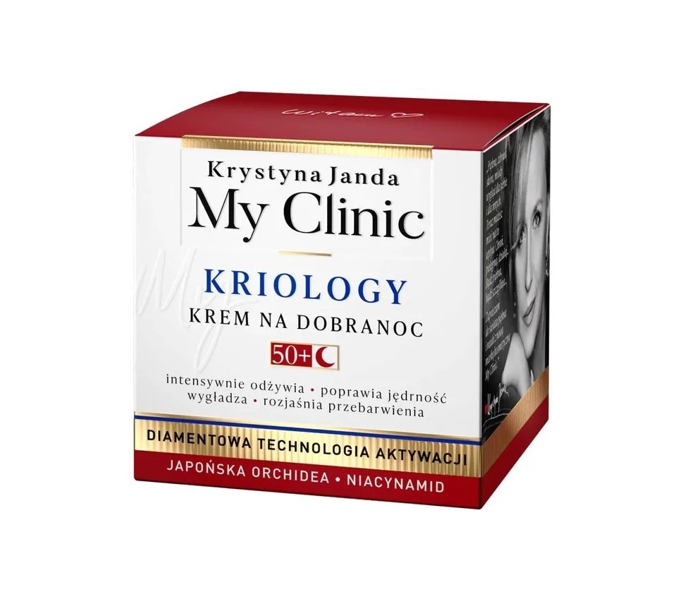 JANDA MY CLINIC KRIOLOGY Krem na dobranoc 50+ 50 ml zapewnia doskonałą nocną pielęgnację cery dojrzałej kobiet po 50 roku życia. Kosmetyk intensywnie odżywia, odbudowuje gęstość, wygładza oraz rozjaśnia przebarwienia skóry.