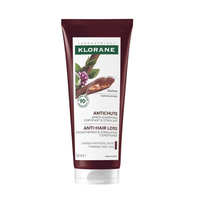 Odżywka KLORANE z chininą i kofeiną wzmacnia, stymuluje i ogranicza wypadanie włosów. Już po pierwszym użyciu zmniejsza łamliwość o 61%, poprawia gęstość i nadaje włosom siłę oraz blask. Może być stosowana ze spłukiwaniem lub bez.