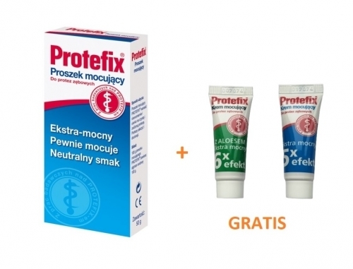 Do każdego zamówienia Próbka kremu mocującego do protez 4 ml GRATIS (PROTEFIX Krem mocujący z aloesem lub PROTEFIX Krem mocujący z ekstra mocny). Próbka kremu wysyłana jest losowo.