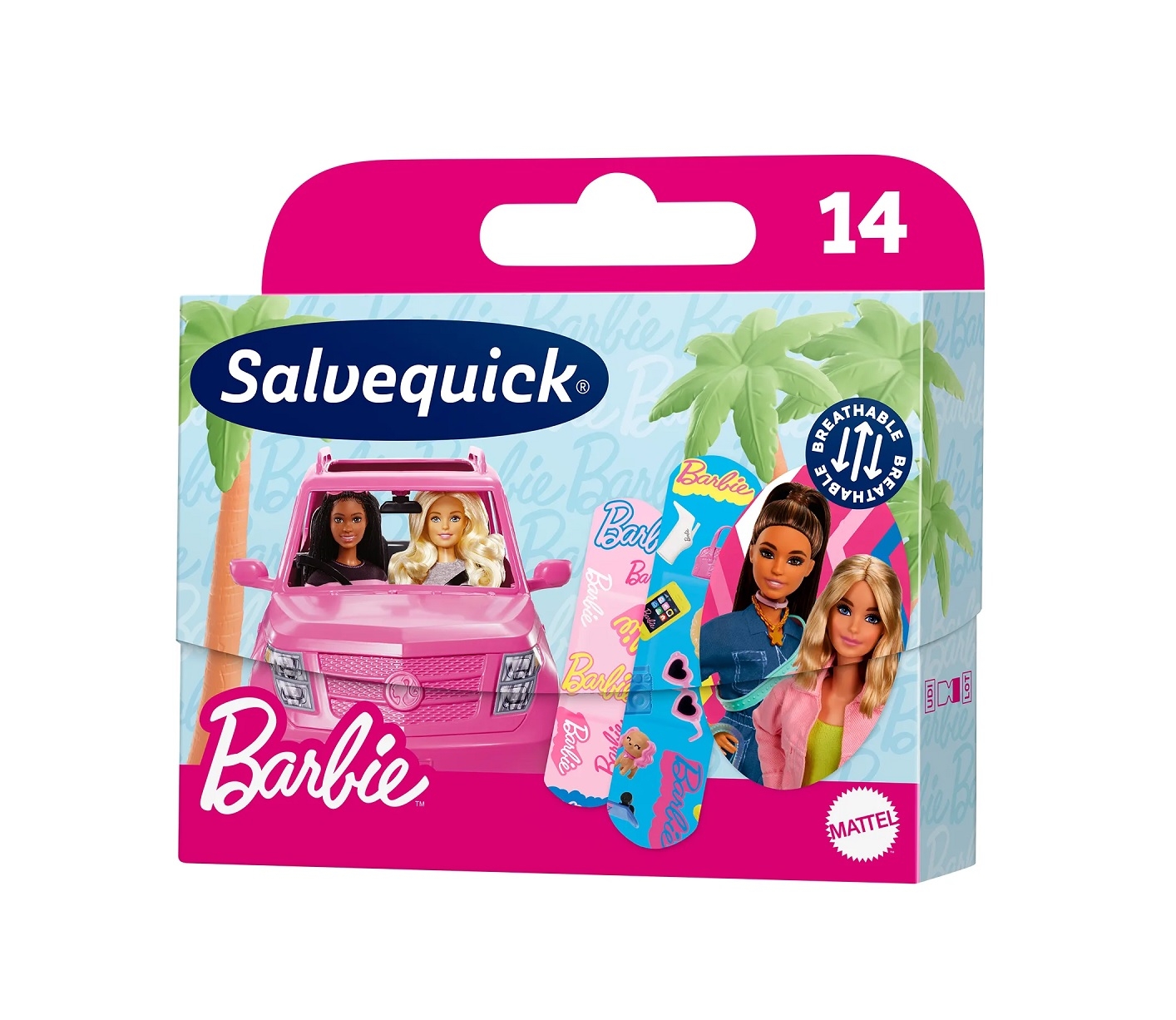 SALVEQUICK BARBIE to wyrób medyczny w formie dziecięcych plastrów z barwnymi motywami przedstawiającymi bohaterki uwielbianej przez najmłodszych Barbie. Wesołe postaci pomagają złagodzić nieprzyjemne emocje po skaleczeniu, otarciu czy zadrapaniu. Plastry wykonano z elastycznego, oddychającego materiału, który jednocześnie skutecznie chroni przed brudem i wilgocią.