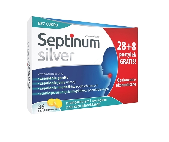 SEPTINUM SILVER na ból gardła bez cukru 36 pastylek do ssania