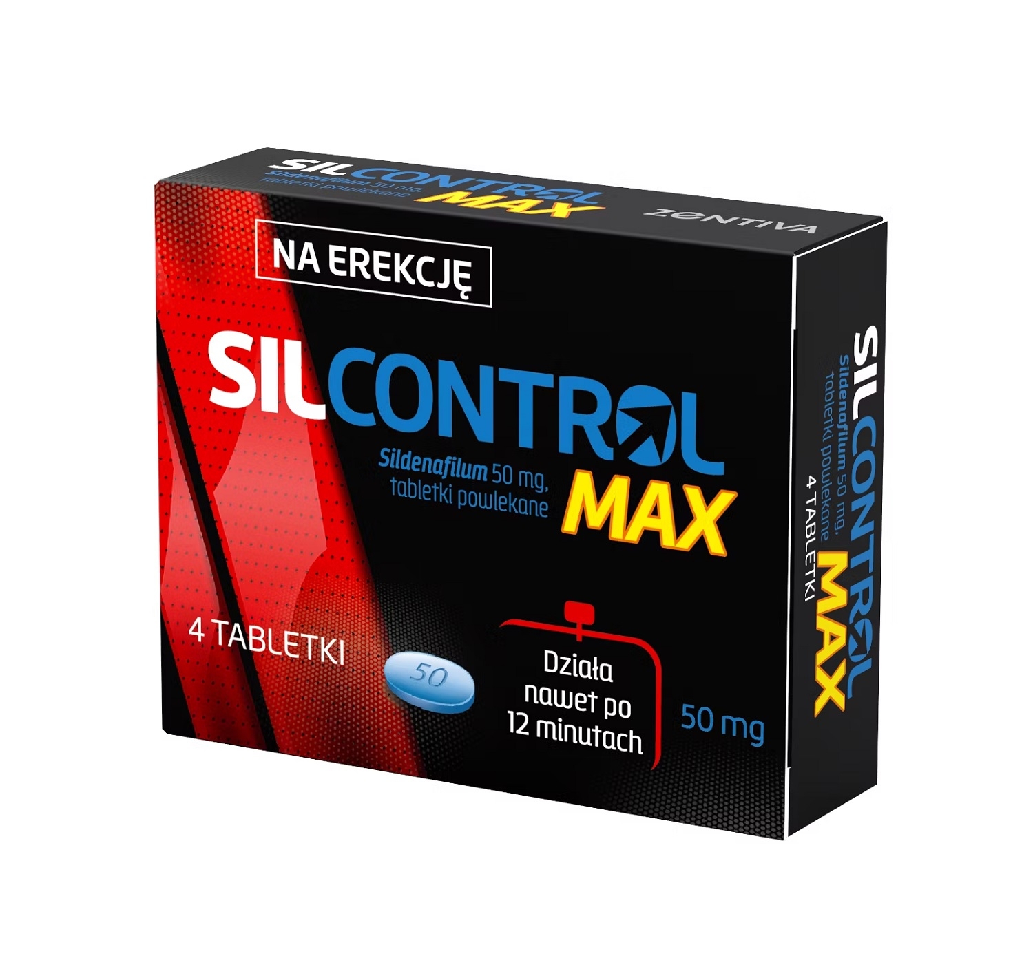 SILCONTROL MAX to produkt leczniczy przeznaczony dla dorosłych mężczyzn zmagających się z zaburzeniami erekcji. Zawiera syldenafil, substancję z grupy inhibitorów fosfodiesterazy typu 5 (PDE5), która wspomaga naturalny proces uzyskania wzwodu. Działanie leku opiera się na rozszerzaniu naczyń krwionośnych w prąciu, co ułatwia napływ krwi podczas pobudzenia seksualnego. Silcontrol MAX nie wywołuje wzwodu samodzielnie – jego skuteczność jest możliwa wyłącznie w przypadku wystąpienia podniecenia seksualnego. Preparat stosowany jest w terapii zaburzeń erekcji, definiowanych jako niemożność osiągnięcia lub utrzymania wzwodu wystarczającego do odbycia satysfakcjonującego stosunku płciowego. Silcontrol MAX pomaga poprawić funkcjonowanie seksualne i jakość życia mężczyzn, u których występują okresowe lub stałe trudności z erekcją. Przed zastosowaniem leku należy zapoznać się z ulotką oraz skonsultować się z lekarzem lub farmaceutą, zwłaszcza w przypadku chorób układu krążenia lub przyjmowania innych leków.