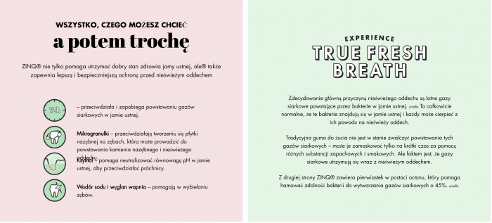 - Starannie dobrana formuła dla zdrowia jamy ustnej – Skład gumy został opracowany tak, aby nie tylko odświeżać oddech, lecz także realnie wspierać higienę i kondycję jamy ustnej.
